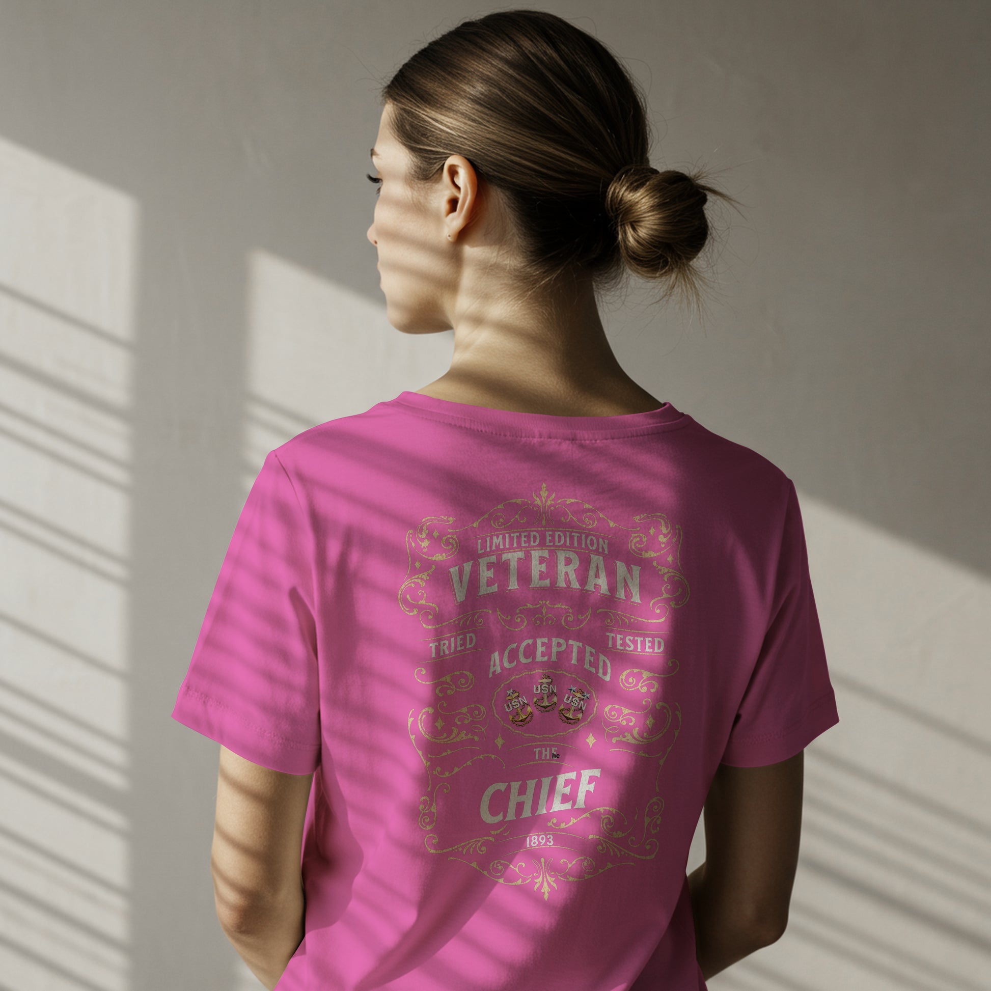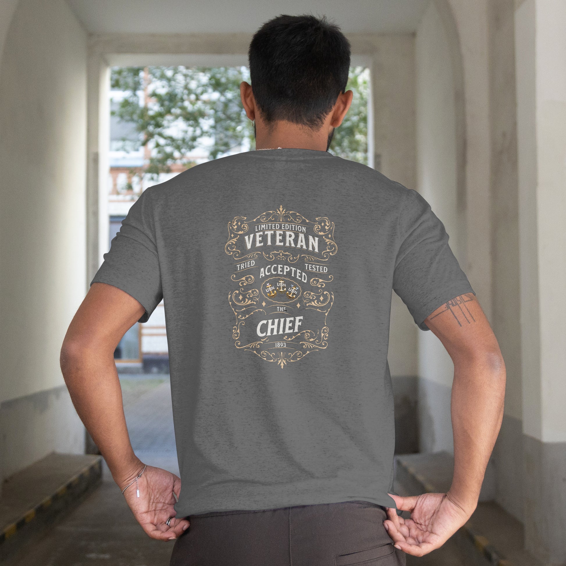 Elevate your wardrobe with the Veteran T-shirt, a distinguished addition to any Chief t-shirt collection. This expertly crafted design celebrates leadership and experience with a bold, refined style that stands out. Made from high-quality materials, it ensures lasting comfort and durability, making it perfect for everyday wear or special occasions. Show your pride and command respect every time you wear this shirt, designed for those who embody strength and veteran status in their community. Add The Veteran Chief to your collection and let your attire speak volumes about your character and achievements.